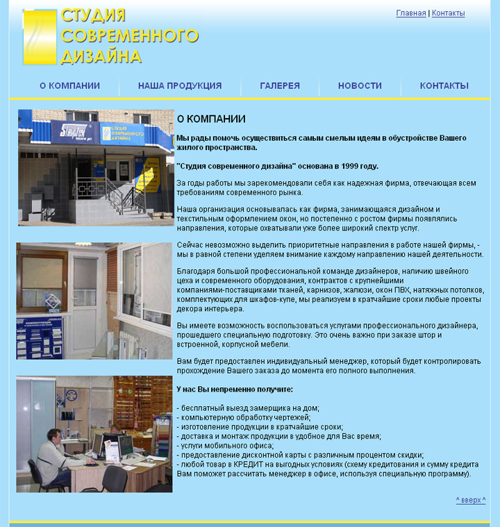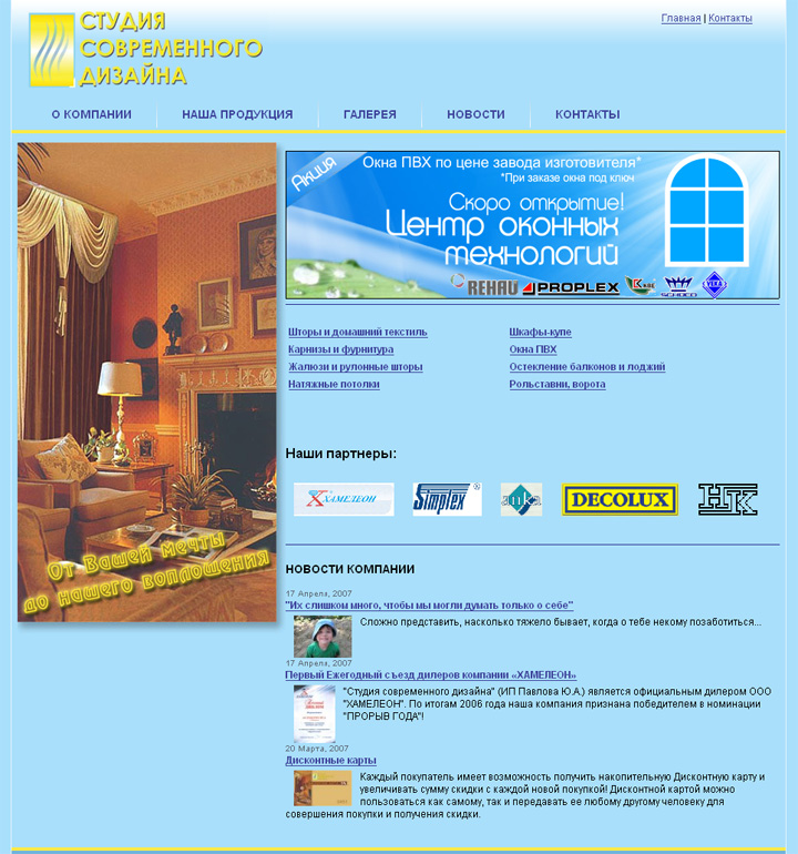 Разработать сайт для компании, которая занимается дизайном и текстильным оформлением окон.